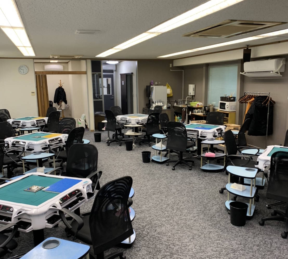 1F、2Fとフロアが別れており麻雀卓14台が配置された
